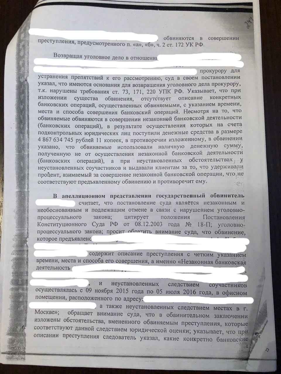 Существенное и принципиальное решение МосГорСуда по ч.2 ст. 172 УК РФ (Незаконная банковская деятельность)