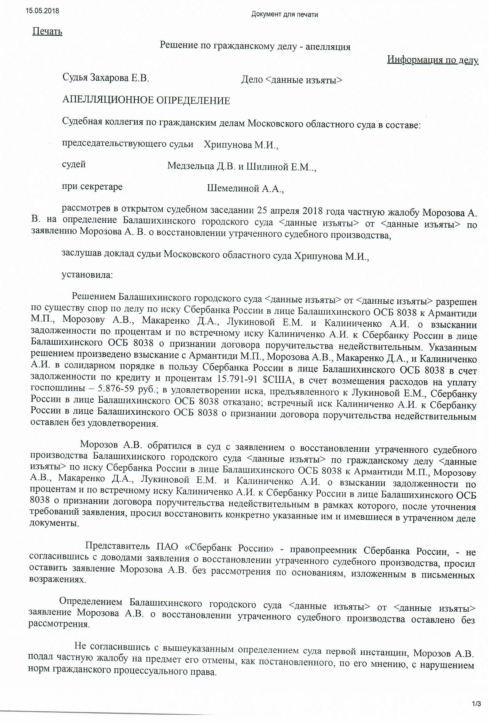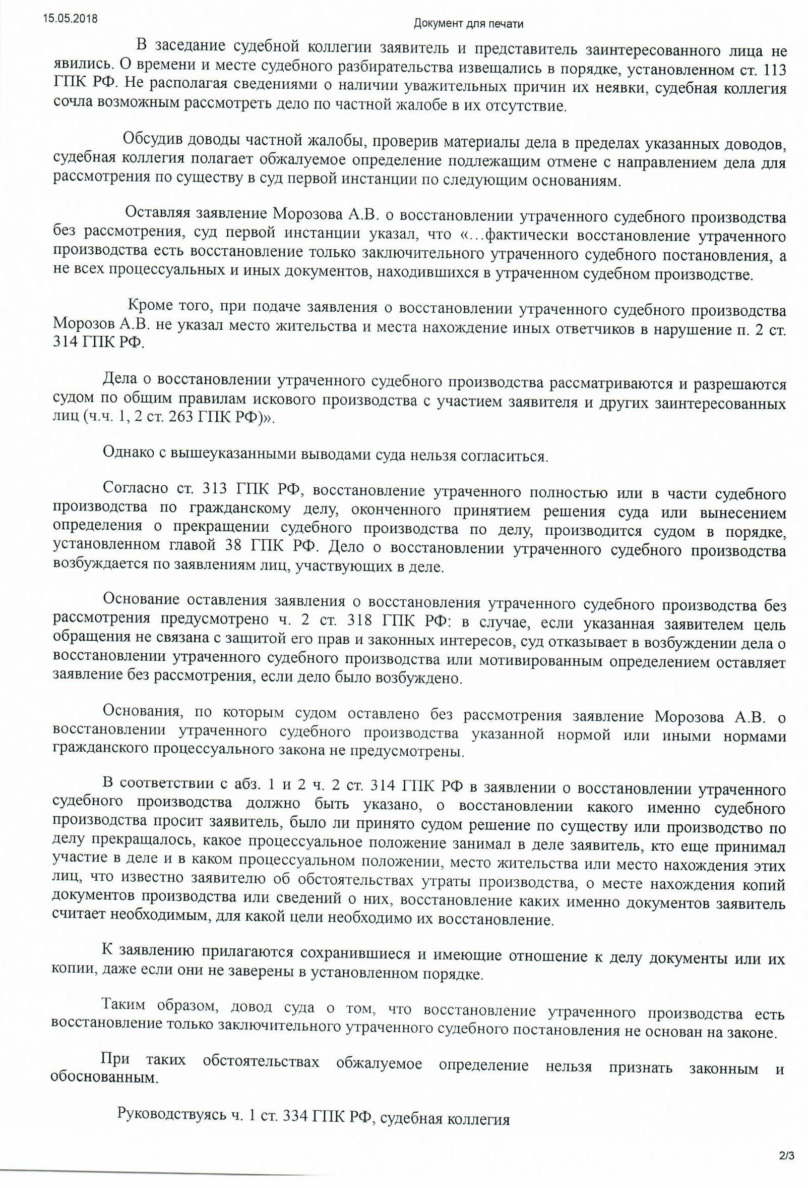 Мособлсуд (ДЕЛО № 33-13439/2018) отменил определение Балашихинского городского суда МО об оставлении без рассмотрения заявления о восстановлении утраченного судебного производства и направил дело в суд для рассмотрения по существу.