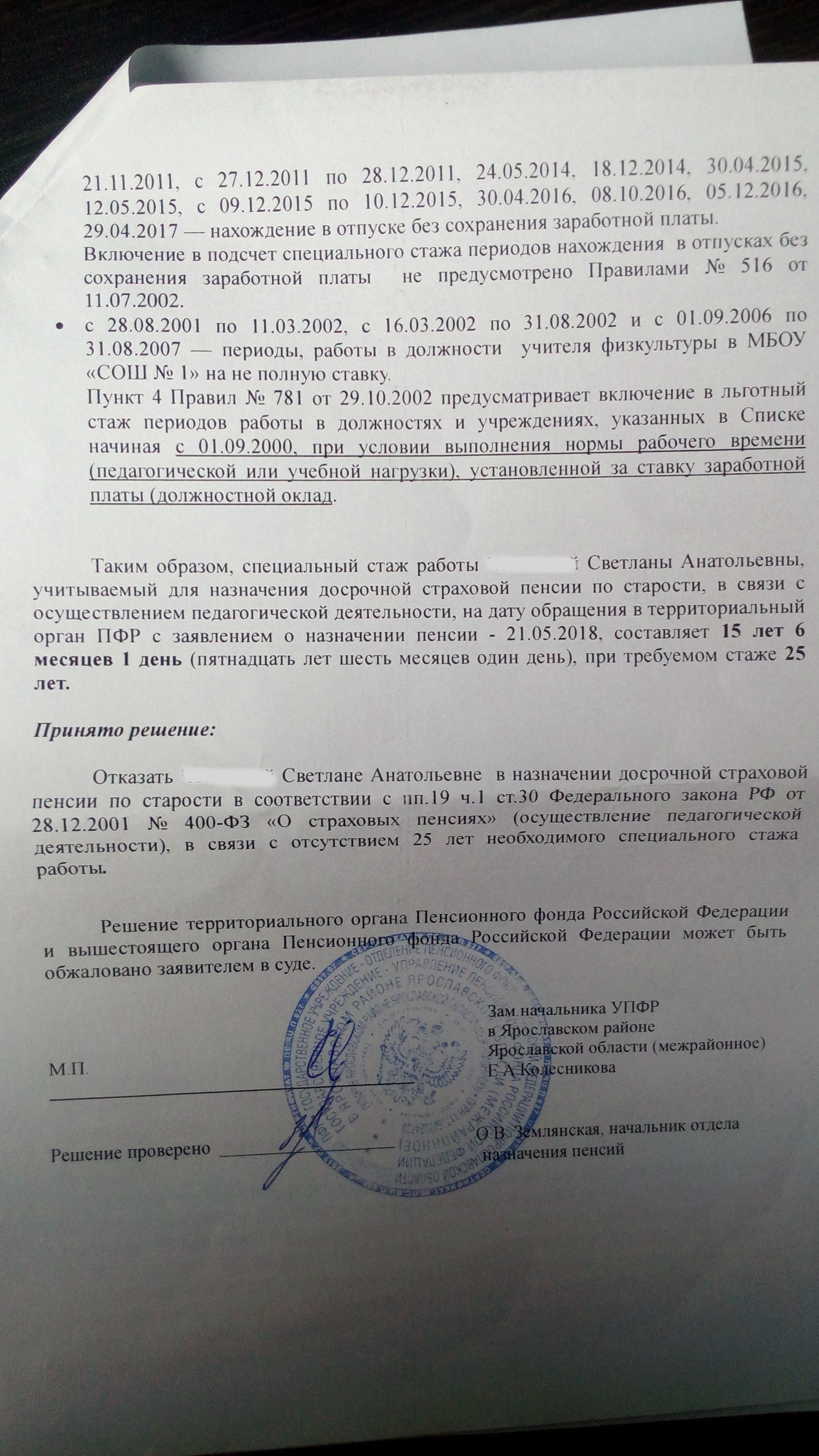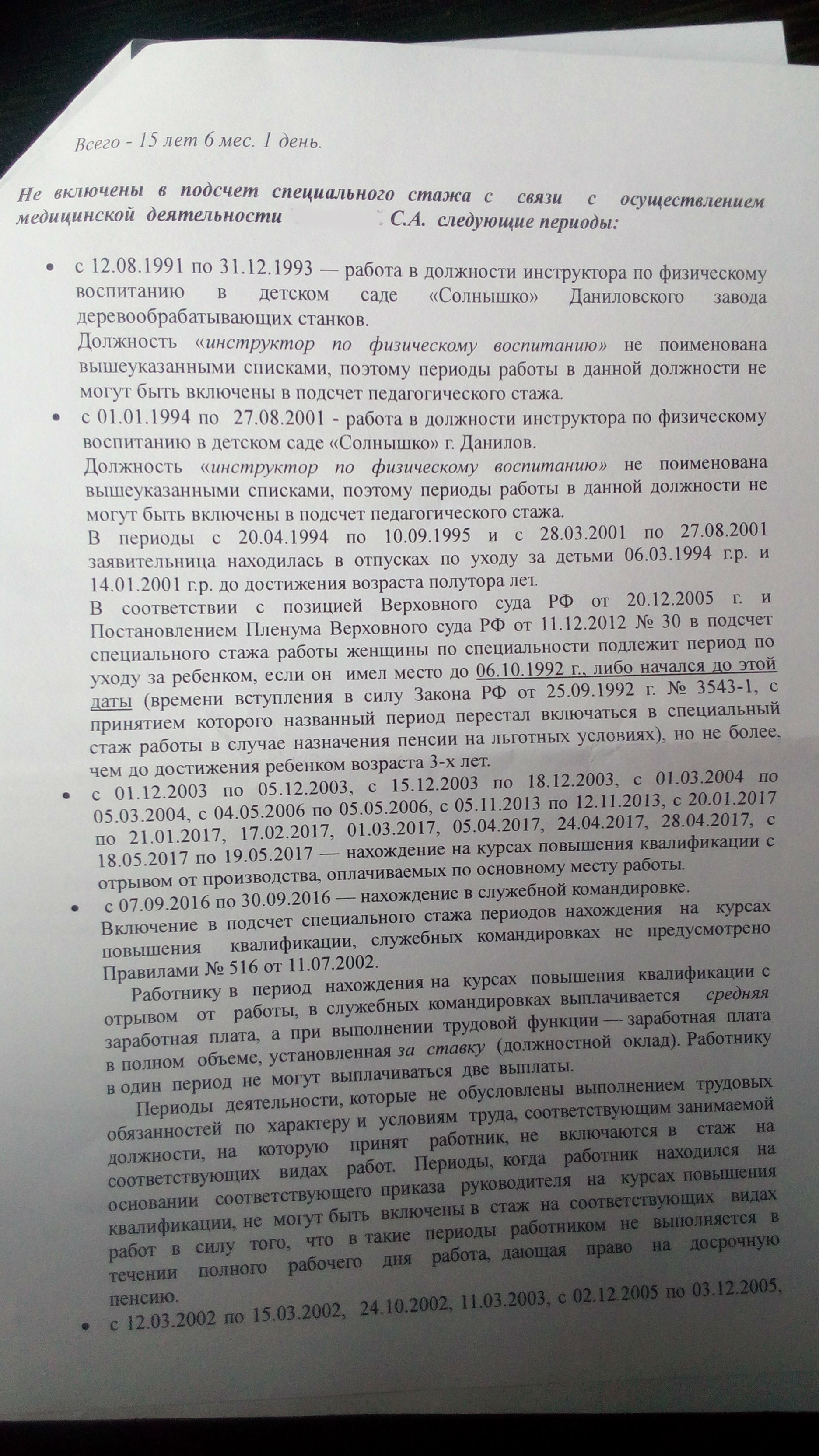 У меня мама проработала 15 лет инструктором физ воспитания в детском саду. Ей не хотят это учитывать в выслугу лет, так как в реестре нет данной профессии. Из тех людей кто судился, у некоторых получилось отсудить. Хотелось бы получить ответ от юриста с опытом в данном вопросе. Нужно сделать чтобы ей учли эти проработанные годы. Несколько месяцев назад я уже задавал этот вопрос здесь и мне сказали что нужно решение об отказе в установлении пенсии. Эти бумаги у меня сейчас на руках, готов прикрепить копии.