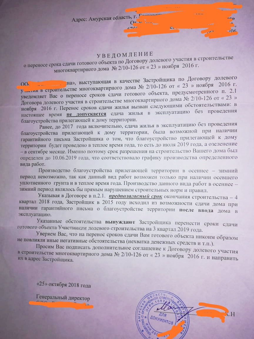 Застройщик отодвигает срок сдачи