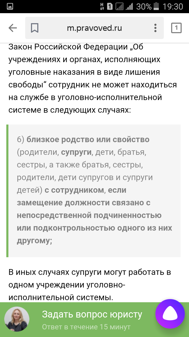 Мы с женой работаем в одном учреждении УФСИН. Но в разных отделах. На должностях старших инспекторов.нам говорят что мы не можем работать в одном учреждении,так как это конфликт интиресов