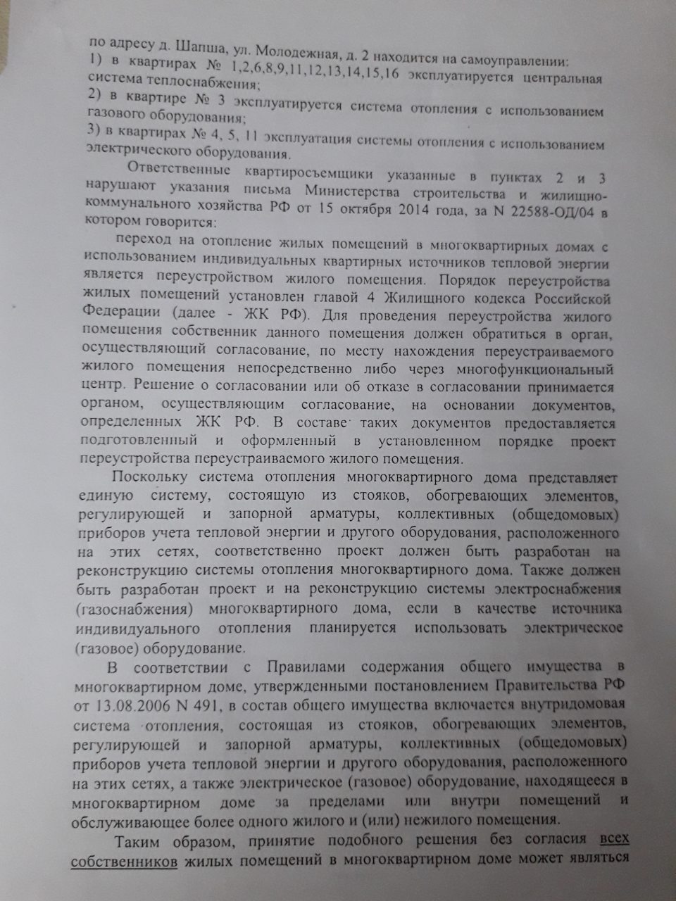 Здравствуйте. Такая ситуация, живу в многоквартирном деревянном доме, в моей квартире предыдущий собственник в 2011 году установил газовый котёл, т. е. отопление в квартире газовое, а от центрального отопления отказался. Но сейчас жэк заявляет о незаконной установке данного газового котла и насчитывает плату за центральное отопление, которым я не пользуюсь ссылаясь на письмо министерства строительства и жилищно-коммунального хозяйства рф от 15. 10.2014 года. И требует, чтобы я убрала газовое отопление и снова подключила центральное. Как мне быть в данной ситуации?