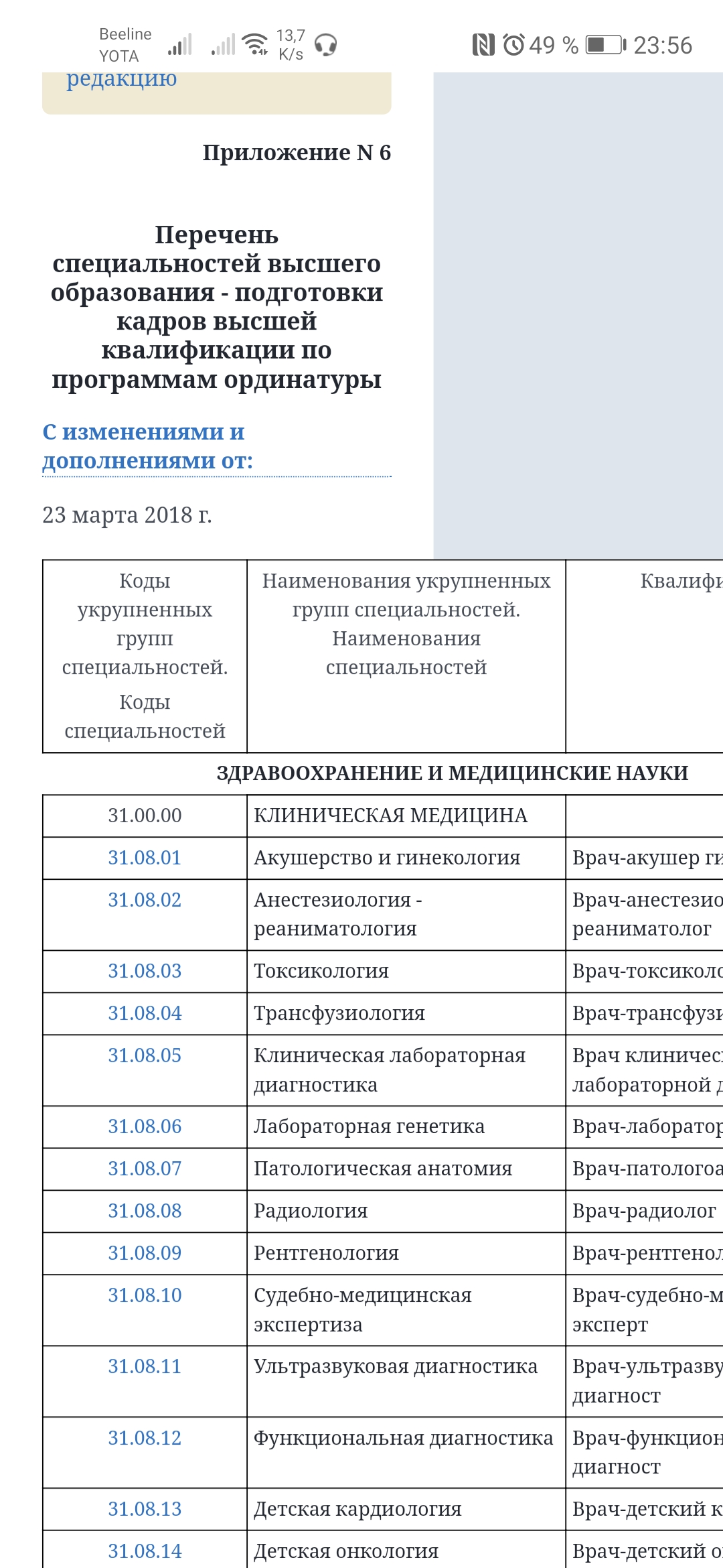 Есть код 31.05.01 (старый код - 060101.65) Уровень образования Специалитет.