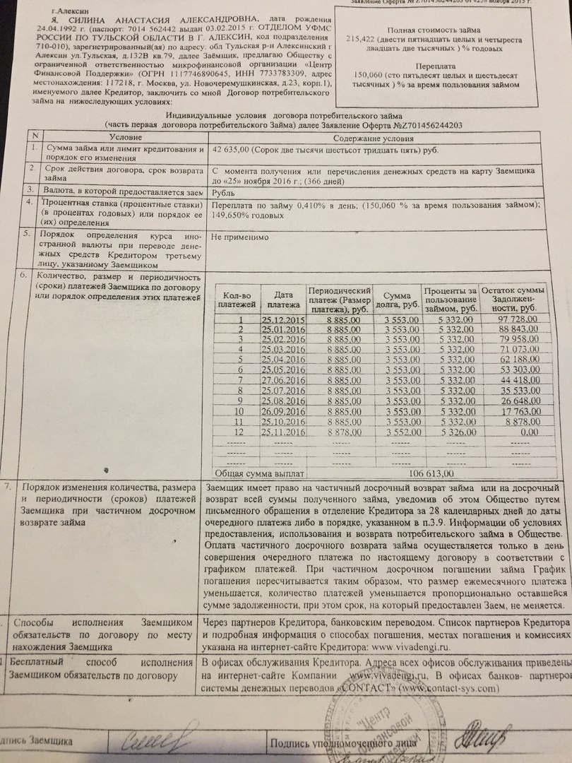 В следствии ухудшения материального положения не могла лдалее производить расчеты с этой МФО в полном объеме.
