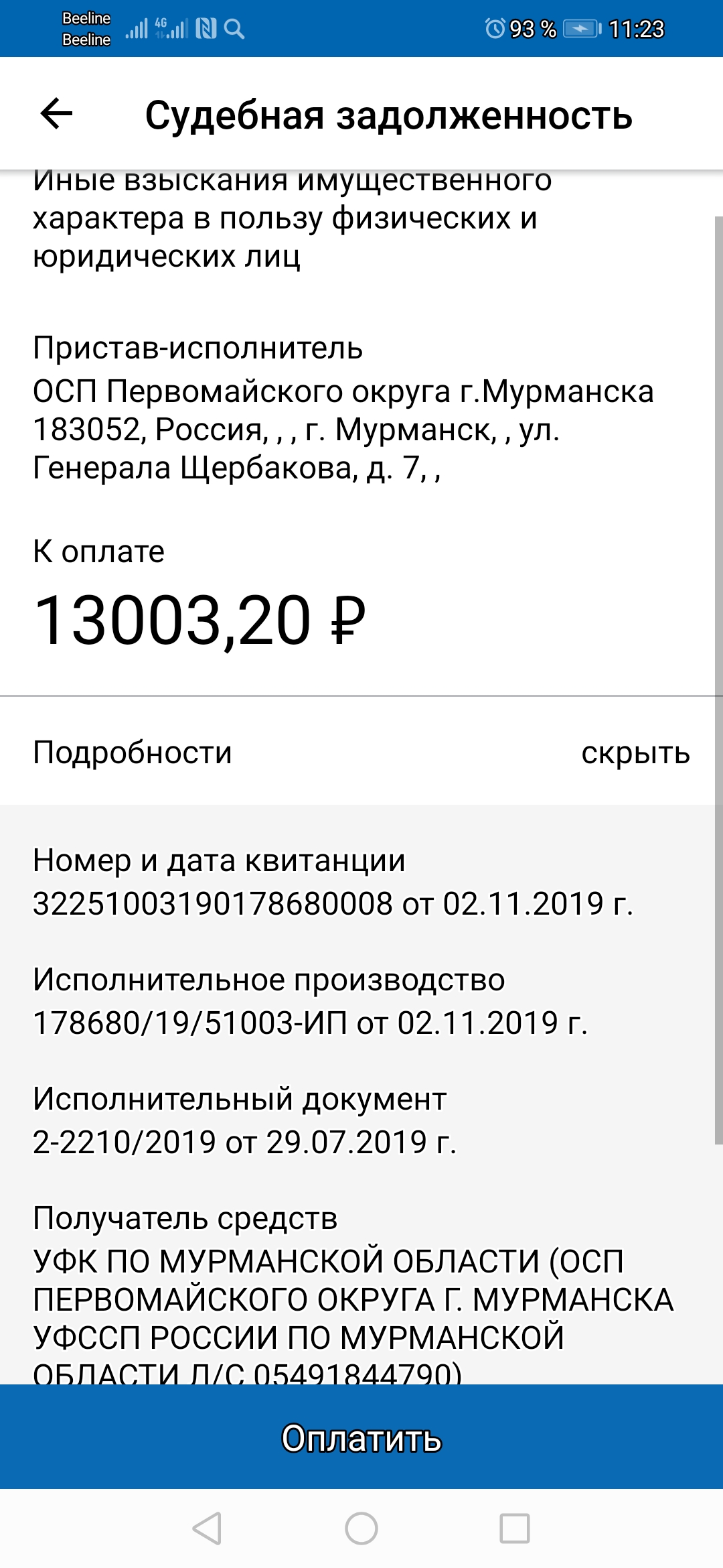 Мной обнаружена на моё имя судебная задолженность на иное лицо. Физически не получается дойти до Судебных Приставов в связи с совпадением графиков работы. Отправлено электронное письмо с фотографией данной задолженности и собственным контактным номером телефона.