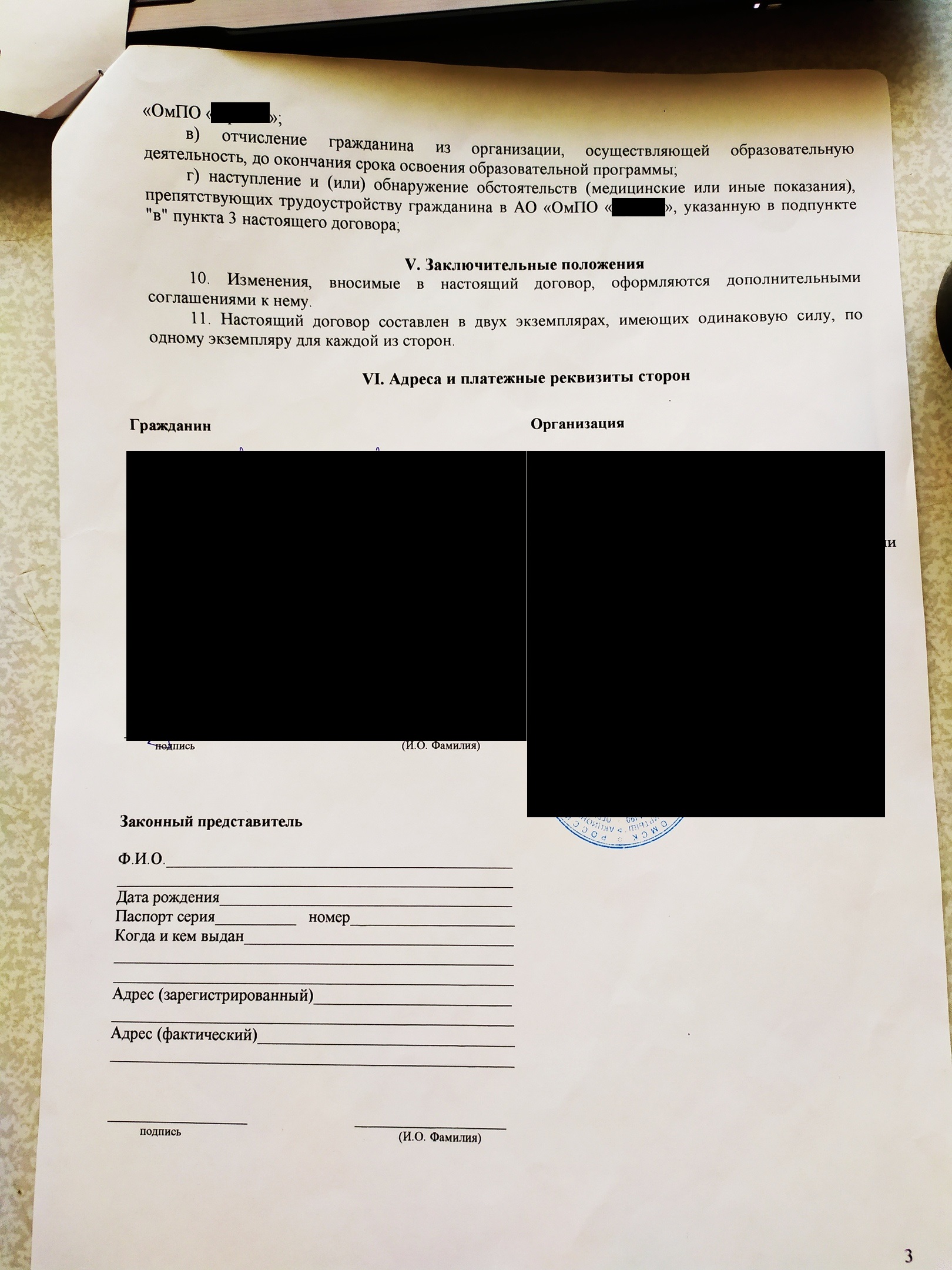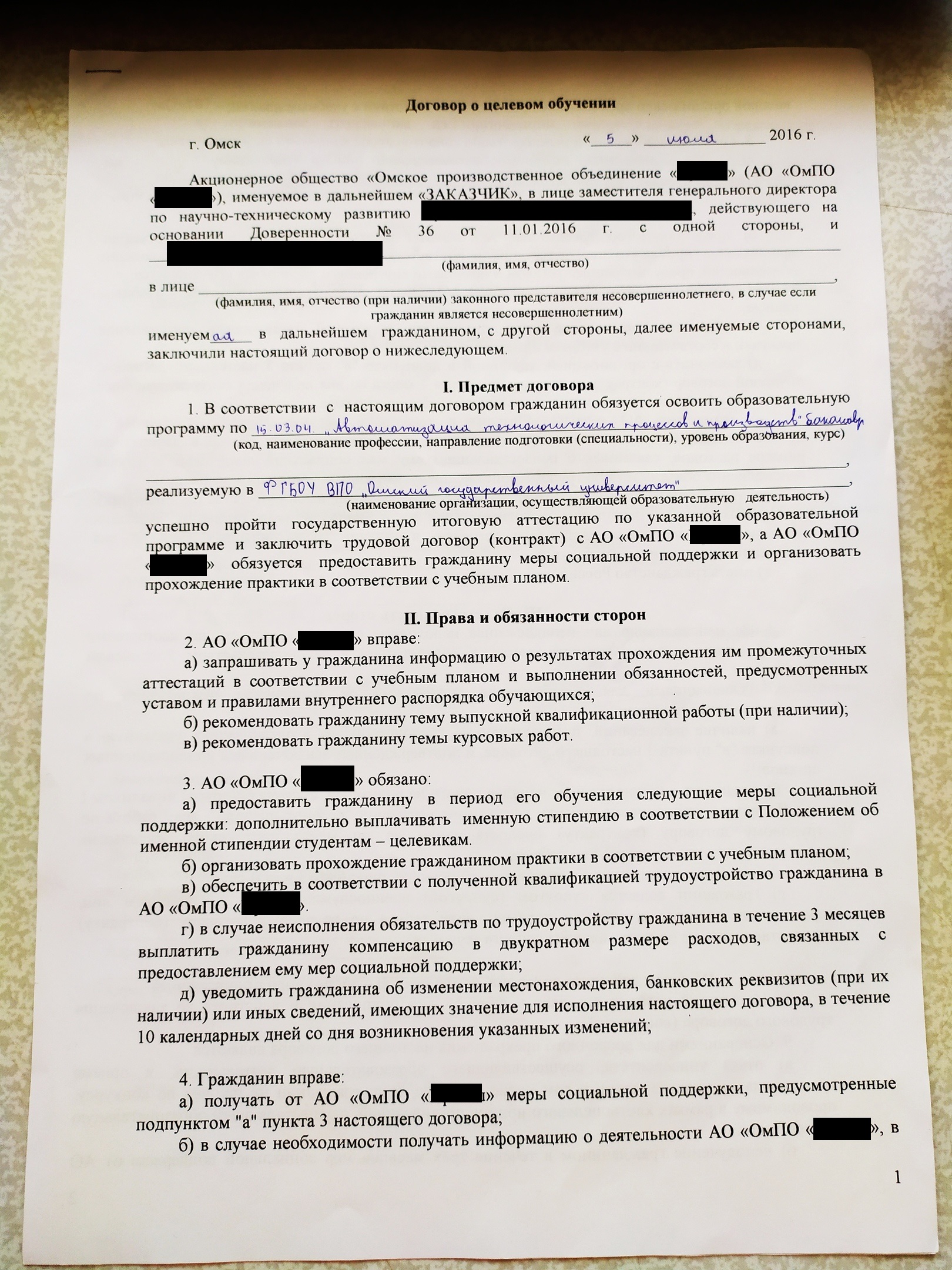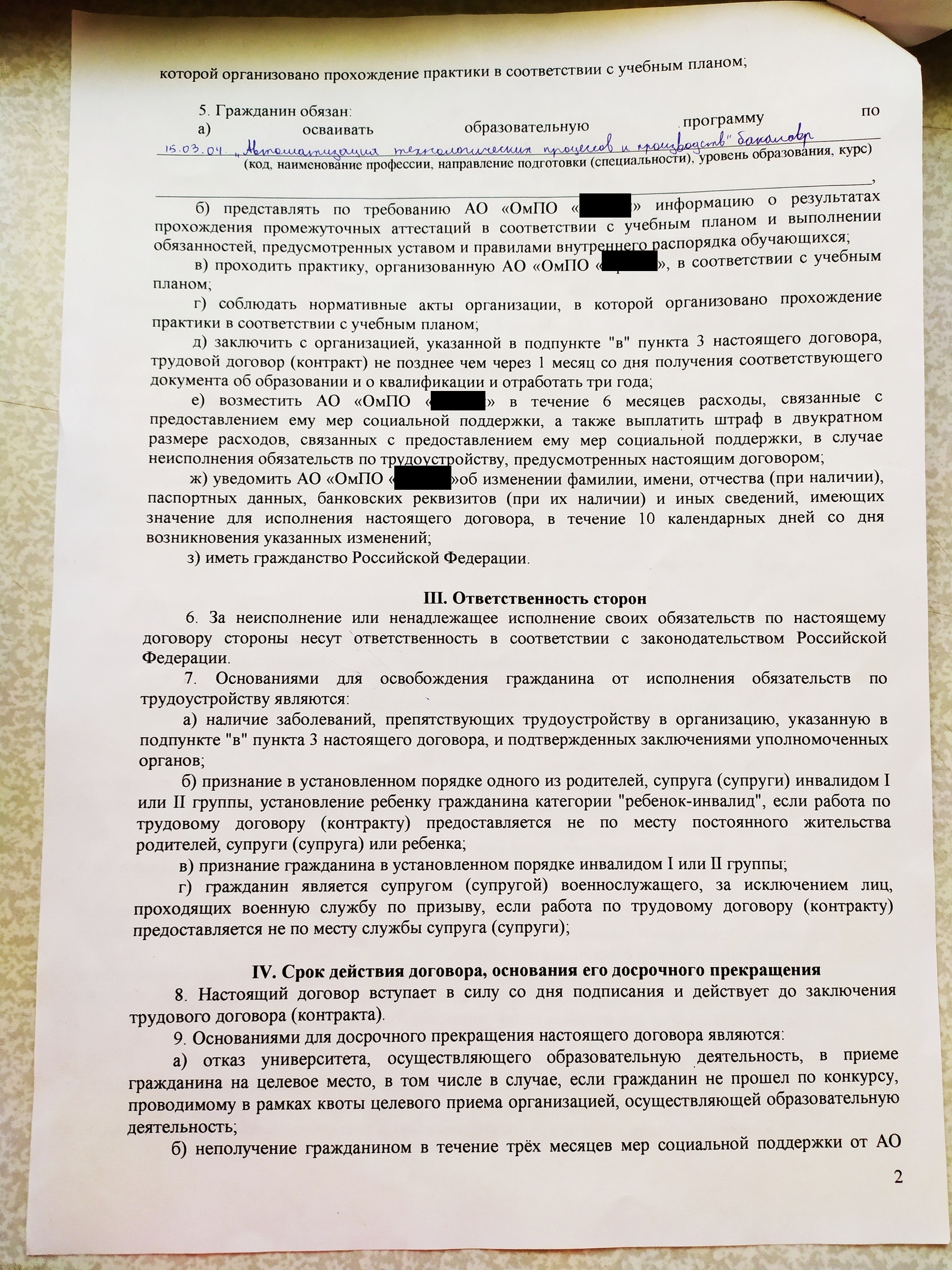 Здравствуйте! 5 июля 2016 года заключила двусторонний договор о целевом обучении с акционерным обществом "Производственное объединение ***" (ПО ***). По этому договору я обязана: 1) осваивать образовательную программу по специальности 15.03.04 2) предоставлять по требованию ПО .*** информацию о результатах прохождения промежуточной аттестации; 3) проходить практику организованную ПО ***; 4) заключить с организацией трудовой договор (контракт) не позднее чем через 1 месяц со дня получения соответствующего договора документа об образовании и о квалификации и отработать три года; 5) возместить ПО *** в течении 6 месяцев расходы связанные с предоставлением ему мер социальной поддержки, а также выплатить штраф в двухкратном размере расходов, связанных с предоставлением ему мер соц. поддержки, в случае неисполнения обязательств по трудоустройству, предусмотренных настоящим договором; Обязанности ПО ***: 1) предоставить гражданину в период его обучения следующие меры социальной поддержки: дополнительно выплачивать именную стипендию в соответствии с Положением об именной стипендии студентам - целевикам; Основания досрочного прекращения договора: 1) неполучение гражданином в течении трех месяцев мер социальной поддержки от ПО *** Сейчас я обучаюсь на 4 курсе и после получения диплома я не хочу идти отрабатывать 3 года на этом ПО, так как вижу для себя более перспективные варианты, при этом во время обучения ПО не выплачивало мне соц. поддержку, т. е. стипендию, при этом за время обучения я два раза обращалась на ПО чтобы узнать, что нужно для получения стипендии, они отвечали что необходимо собрать документы, все документы я собирала, оригинал и копии по электронной почте, каждый раз меня "кормили завтраками", говорили о каком-то собрании по поводу стипендий, которого ещё не было, но не говорили когда оно будет , но организовывало все необходимые практики. Так же во время обучения в ВУЗе я проходила платные курсы, организованные ВУЗом, их мне оплачивало ПО, в общем ПО оплатило 20 тысяч рублей Могу ли я после получения диплома не отрабатывать три года на этом ПО, так как они не платили мне стипендию?