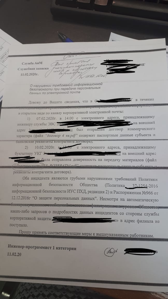 Добрый день! Мне необходимо грамотно составить объяснительную записку по факту моего нарушения на предприятии где я работаю, о передаче персональных данных (доверенность) посредством рабочей электронной почты на эл. Адрес подрядчика нашей организации. По факту наша служба кз перехватила и не отправила эту доверенность. Далее я как положено заархивирована ее и отправила. Но факт остался фактом. Нарушение было. Направила данный документ я по факту находясь в законном отпуске. Представитель подрядной организации срочно запостил отправить акты приёма передачи тмц и доверенность на их получении в срочном порядке. Лицо меня замещающее не обладает особо информацией, мне проще было самой разобраться и приехать на работу и отправить. Что как оказалось для меня теперь не проще. В общем по невнимательности отправила без архивации. Ущерба предприятию думаю нет, но нарушение дисциплины на лицо. Сейчас я ещё в отпуске. Выхожу 14 февраля. Надо писать объяснительную и писать грамотно. Честно сказать напряжённость на работе максимальная была, в том числе и закрытие годового, ни праздников, ни выходных... яХотела в отпуске отдохнуть но и тут спокойно не дают. Работодатель меня конечно не вызвал, но наше предприятие работает на результат. Помогите грамотно написать объяснительную и чем по Вашему всё-таки грозит мне это нарушение.