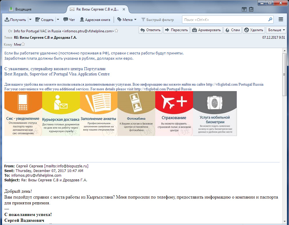 Живем в России, граждане России. Меня изначально смутил этот момент, т.к. справка с мета работы могла быть только из Кыргызстана. Естественно я задал этот вопрос в компанию VFS, написал письмо, получил официальный ответ на email дословно: