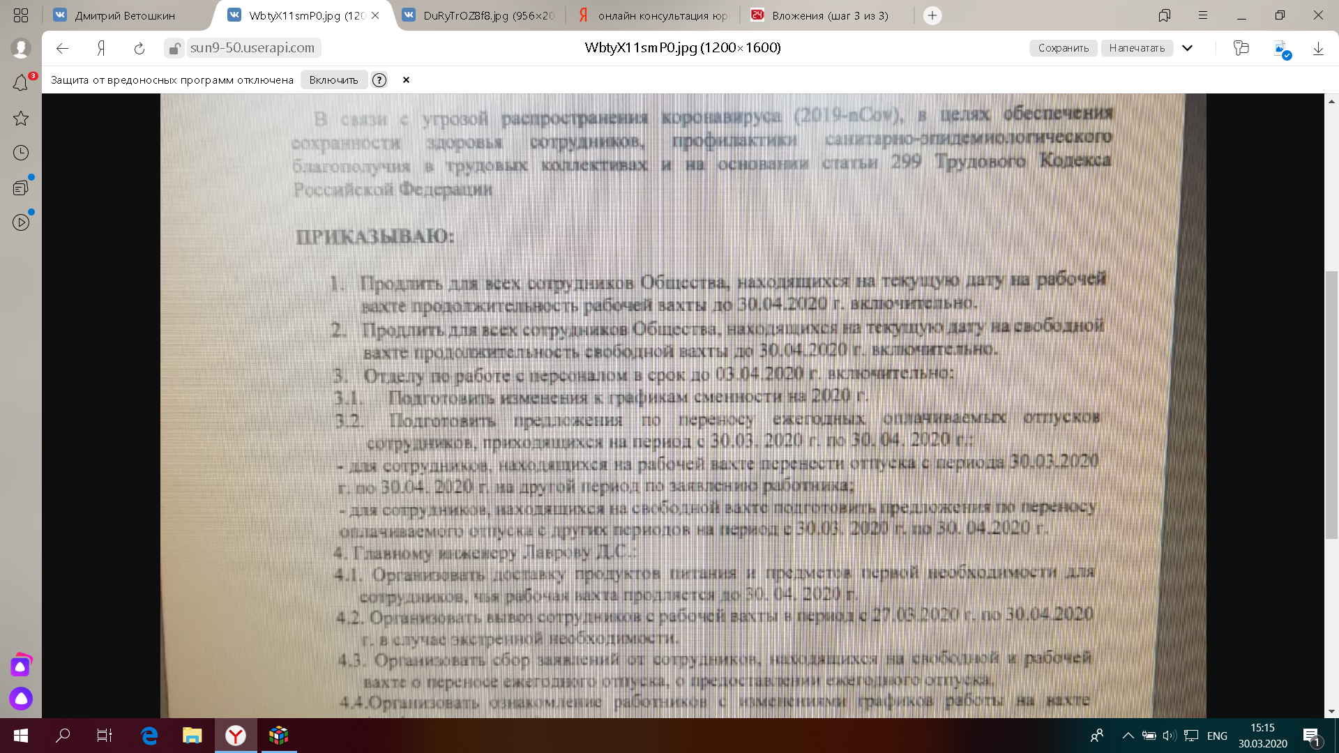 Здравствуйте! Я работаю вахтами 2 недели через 2. Работодатель в связи с распространением вируса меняет график работы, ссылаясь на статью 299 ТК РФ,вместо 2-ух недель вахты переходим на месяц. Те кто сейчас работают уже отработали 2 недели и еще дальше будут работать месяц. А те кто на выходных соответсвенно будут сидеть дома. Работодатель не предусматривает никаких выплат тем кто на выходных. Законно ли это?? И что мне делать в данной ситуации??