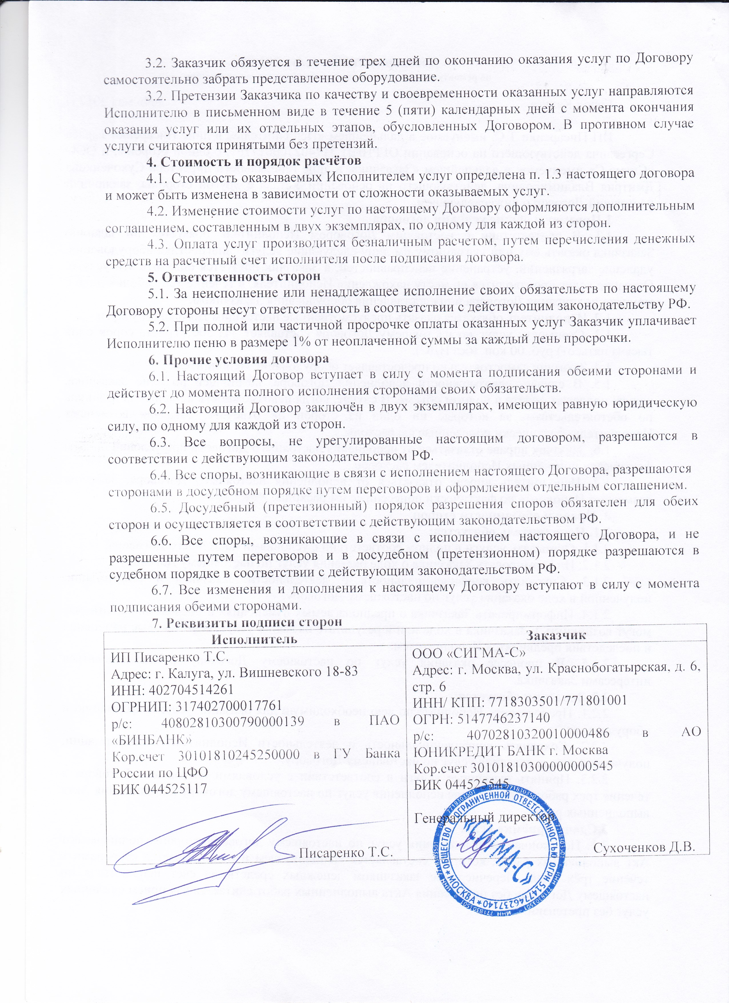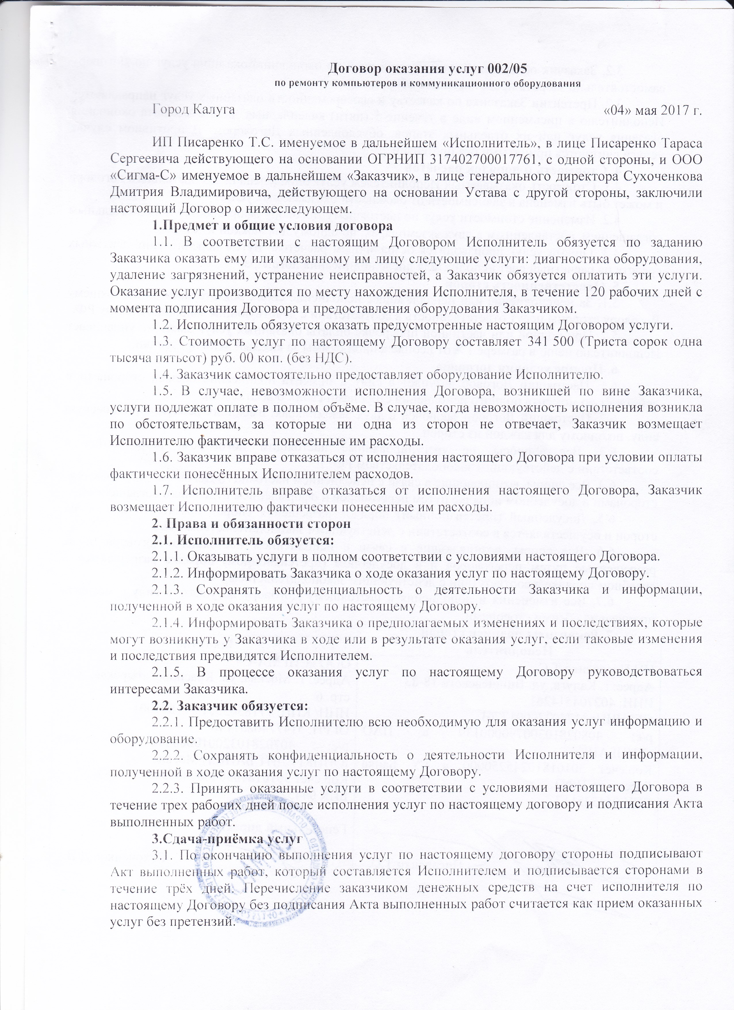 Однако перспективы расторжения такого договора и возможности взыскания уплаченной по договору суммы будут зависеть от конкретных обстоятельств. Представленный договор на первый взгляд очень пространный, предметом его выступает оборудование, однако какое именно не понятно. Не урегулирован вопрос передачи оборудования Исполнителю для проведения работ и т.д.