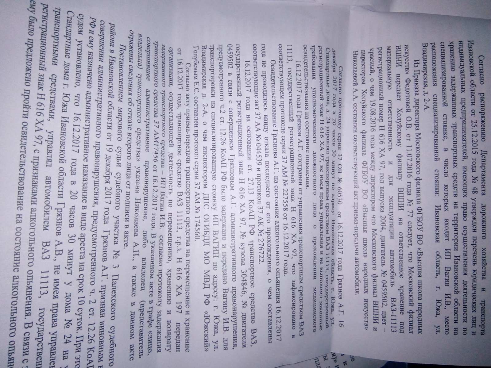 О данном факте что 16.12.2017 в 20.20 Николаева А.А.якобы передала автомобиль Грязнову того же числа 16.12.2017 в 20.30,что Грязнов отказался от подписей и прохождения медицинского освидетельствования я пояснял но суд их не принял во внимание и не выяснил обстоятельств.