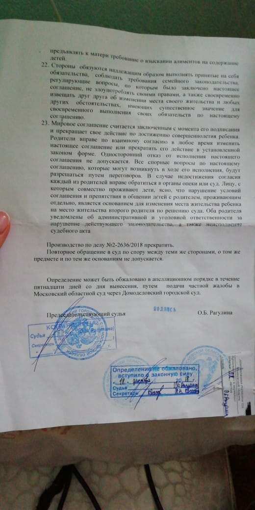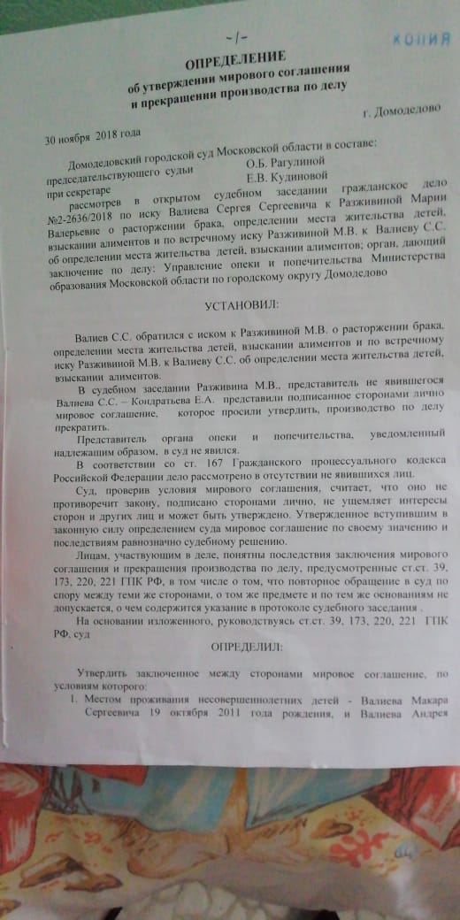 30.11.2018 решением суда было вынесено определение об утверждении мирового согла ..