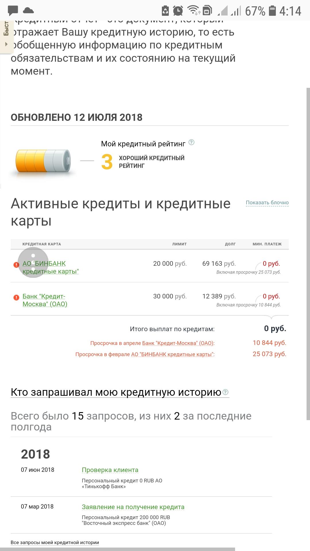 Имеется задолжность в двух банках