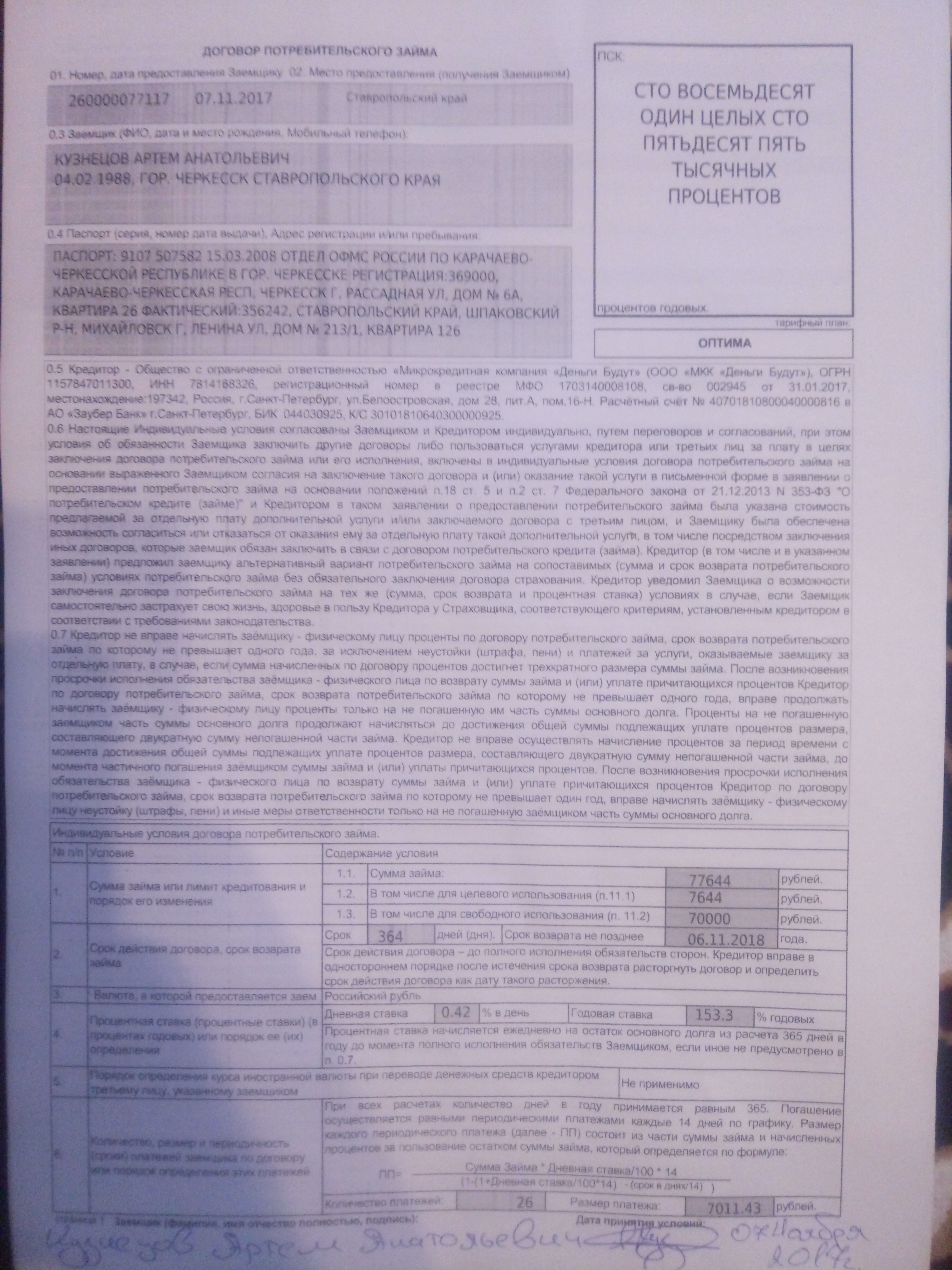 Добрый день меня зовут Артем ситуация вот какая я работал водителем автобуса в Ставрополе з\п была 60000 т р Оценивая свои возможности взял займ 70000 в частной банке ММК деньги будут на один год должен отдать 150000 каждые две недели по 6000 ! Вышло так что остался без работы! Сейчас хватаюсь за любые подработки но денег не хватает! Кредит платить нечем! куда то идти работать за 20000 т р в месяц мне просто не хватит денег! Пожалуйста подскажите как можно поступить в моей ситуации? Заранее спасибо!
