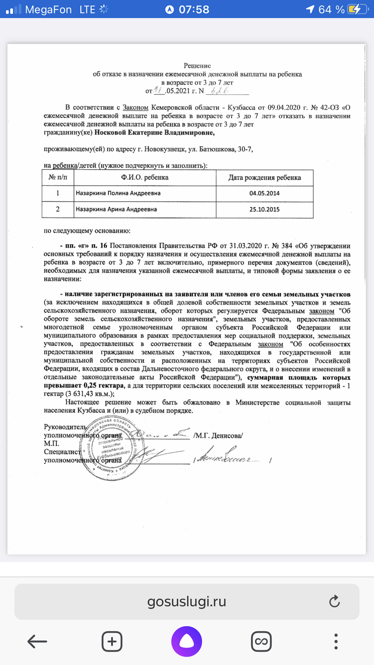 здравствуйте,отказали в пособие от 3 до 7 обосновав это