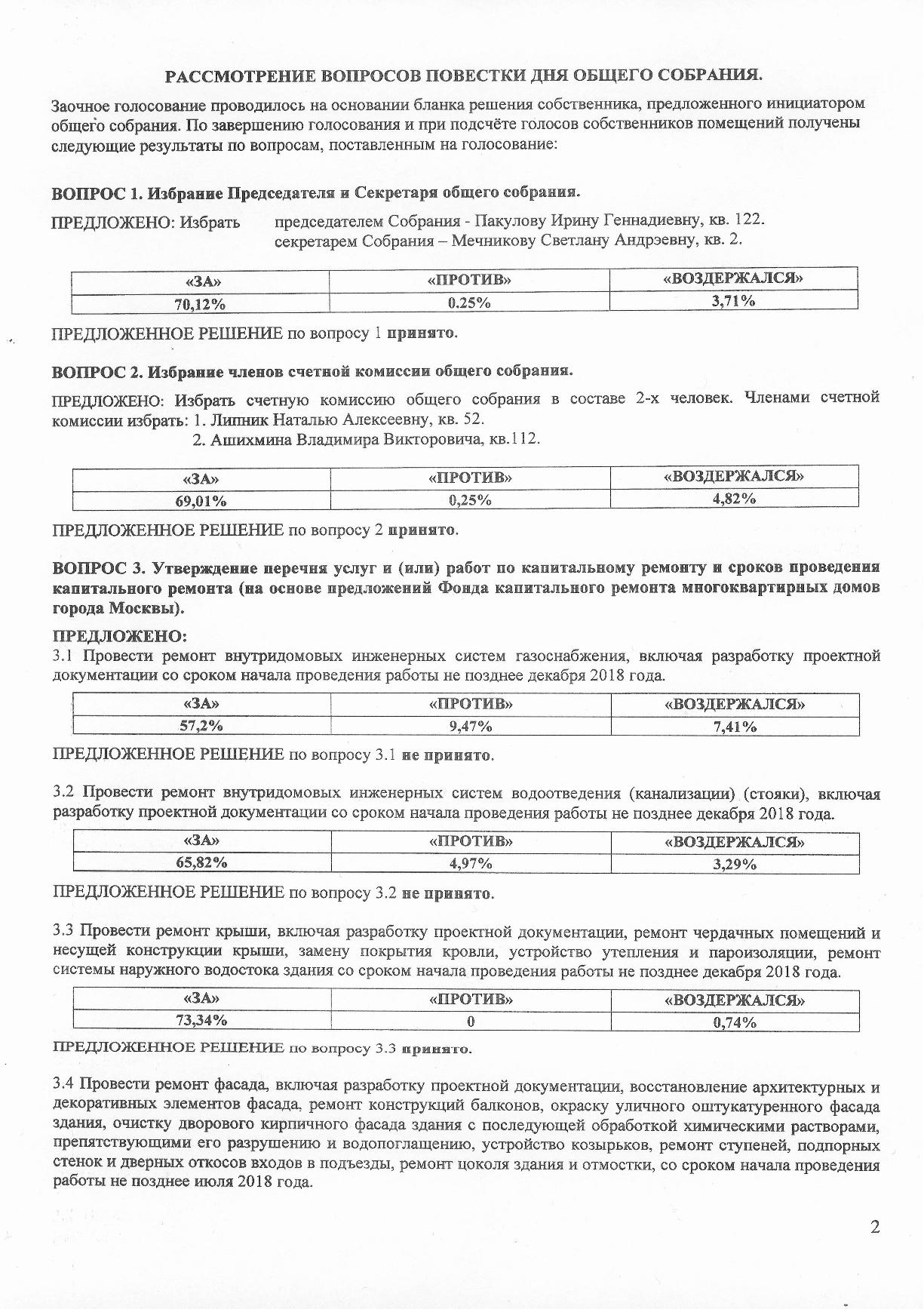 Если смотреть результаты голосования, то против высказались, жители подъездов у которых данные работы уже были выполнены.