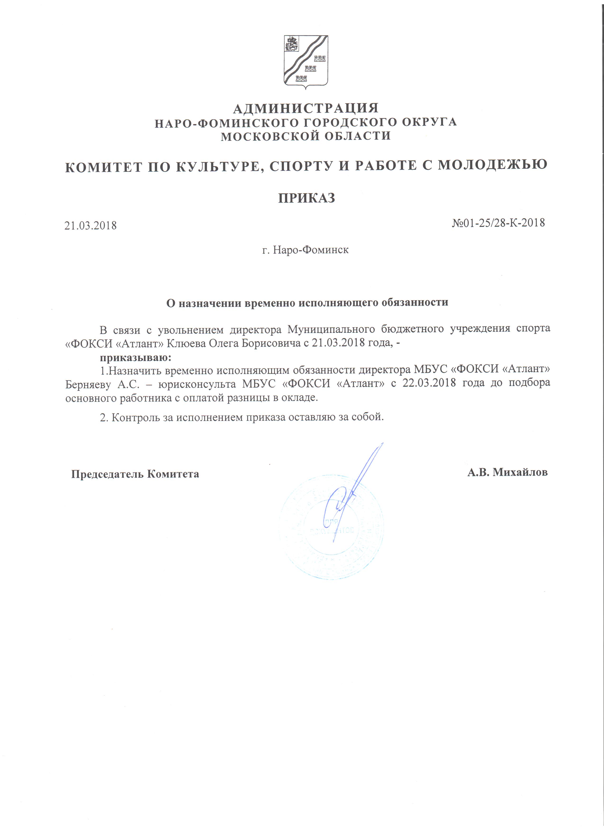 7 марта 2018 мой работодатель Клюев О.Б. (инн 5030065290) поставил меня перед фактом того,что он написал заявление об увольнении и на свое место порекомендовал Комитету по культуре, спорту и работе с молодежью Наро-Фоминского городского округа меня. На что я ответила, что не согласна брать на себя такую ответственность, меня стали уговаривать ссылаясь на то что более некого, я сказала что мне необходимо тогда обговорить этот вопрос с Комитетом, чтобы понять как они видят мое назначение и на каких условиях. Директор сказал, что передаст это Бандуровой О.В. - заместителю председателя Комитета и мне в течении этого дня позвонят. Но мне не позвонили до конца рабочего дня и я решила, что у Комитета есть иная кандидатура на эту должность. Во время выходных дней я заболела и с 11.марта по.19 марта была на больничном. Во время больничного мне звонил директор и спрашивал, когда же меня выпишут, чтобы Комитету точно знать какой датой издавать приказ об его увольнении. Приступив к работе с 20.03.2018 меня поставили перед фактом, что с 21.03.2018 года я буду назначена директором, а если директором не хочу, то И.О. Директора. Того же 20.03.2018 они в срочном порядке провели инвентаризацию где в список комиссии по инвентаризации внесли и меня. Инвентаризация проводилась по адресу г. Наро-Фоминск, ул Ленина, д.9 в МБУС "ФОКСИ "Атлант", вход в спортзал был открыт для посторонних лиц, отсутствовавшие материальные ценности обозначались в наличии, а материально ответственные лица отсутствовали. По сей день я отказываюсь подписывать инвентаризацию и приказ о моем назначении. Помогите, пожалуйста.