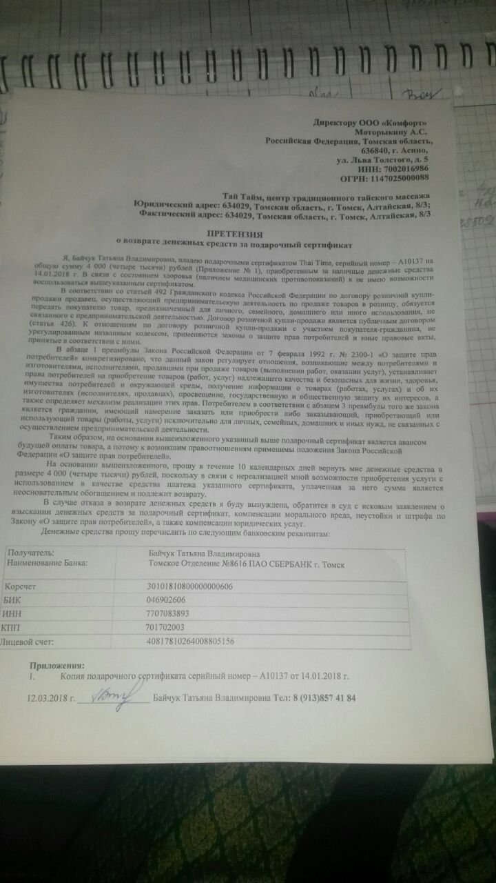 Добрый день. я хозяйка СПА салона. в январе у меня был приобретен сертификат на сумму 4000 руб. в марте женщина написала претензию на возврат в связи с невозможностью по мед.показаниям посетить салон. Для возврата денег (сертификат был оплачен безналичным путем) я попросила чек и карту с которой оплатили сертиф. На что она ответила, что сертиф ей подарили и на основании устного договора дарения правообладание перешло к ней. чека нет, номер карты она присылает свой. и требует вернуть за него деньги. в связи с этим у меня вопрос. А мы вообще как-то защищены от подобных случаев? ведь таким образом сертификаты могут находить на улице и требовать за них деньги, обналичивать деньги с чужих карт и тд. И как понять, что между родственниками есть договор устного дарения а между нами и покупателем есть договор купле-продажи и он как бы после дарения считается не действительным что ли??? где закон защиты нас как работников сферы услуг? мы абсолютно не против вернуть деньги, но хочется понять. Может для защиты нам надо составить акт о возврате с привлечением той стороны, которая покупала сертиф? и еще вопрос продажа была в январе, сейчас апрель- налоги мы заплатили. а вернуть я должна все средства? или по закону могу удержать налоги и стоимость бланка сертификата? спасибо за ответ. olyatsu@inbox.ru