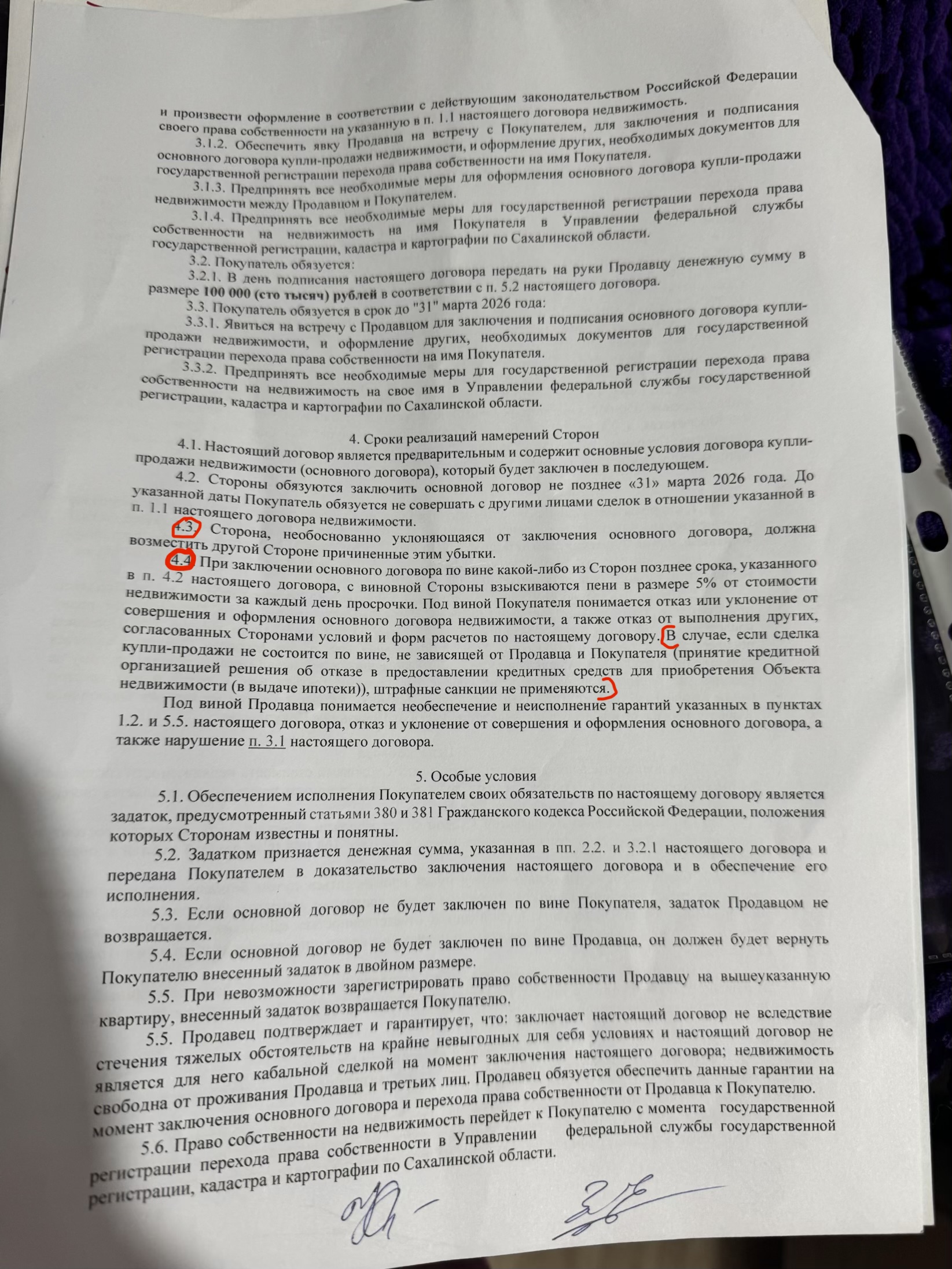 Олег, Можете пожалуйста посмотреть, эти условия подходит под вариант. Сейчас взять ипотеку на другую квартиру , а когда дело подойдет к марту месяцу, риелтор подаст заявку на вторую ипотеку( если придет отказ ,нам залог вернут,если придет положительный ответ,но не вернут). Не будет ли это расцениваться,что мы специально взяли ипотеку,что бы нам специально не одобрили ипотеку там где залог. Ведь в договоре ведь не прописано,что я не имею право право до марта оформлять другую квартиру в ипотеку. И будет или нет это расценивать под пунктом 4.3 (Сторона, необоснованно уклоняющаяся от заключения основного договора, должна