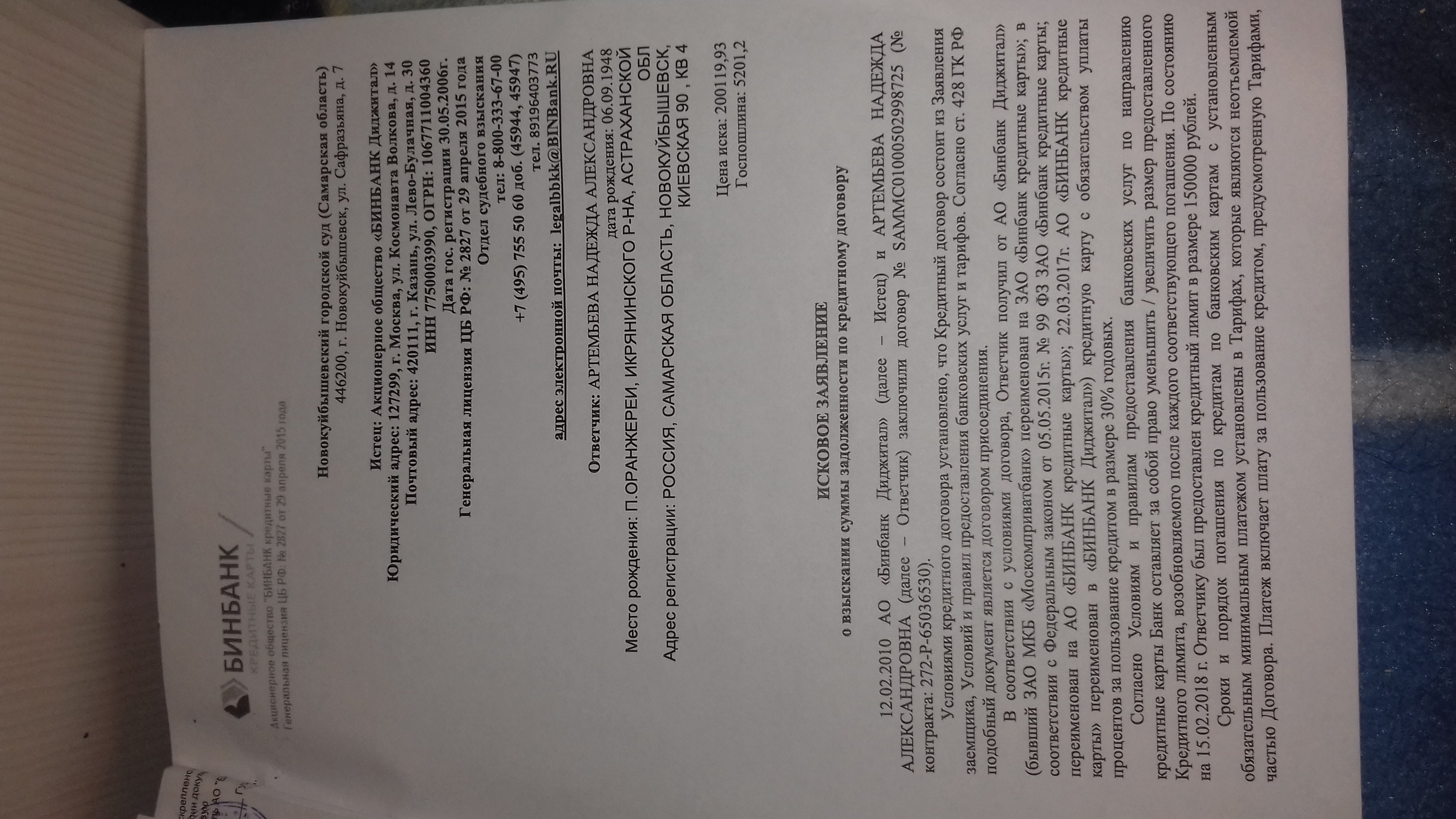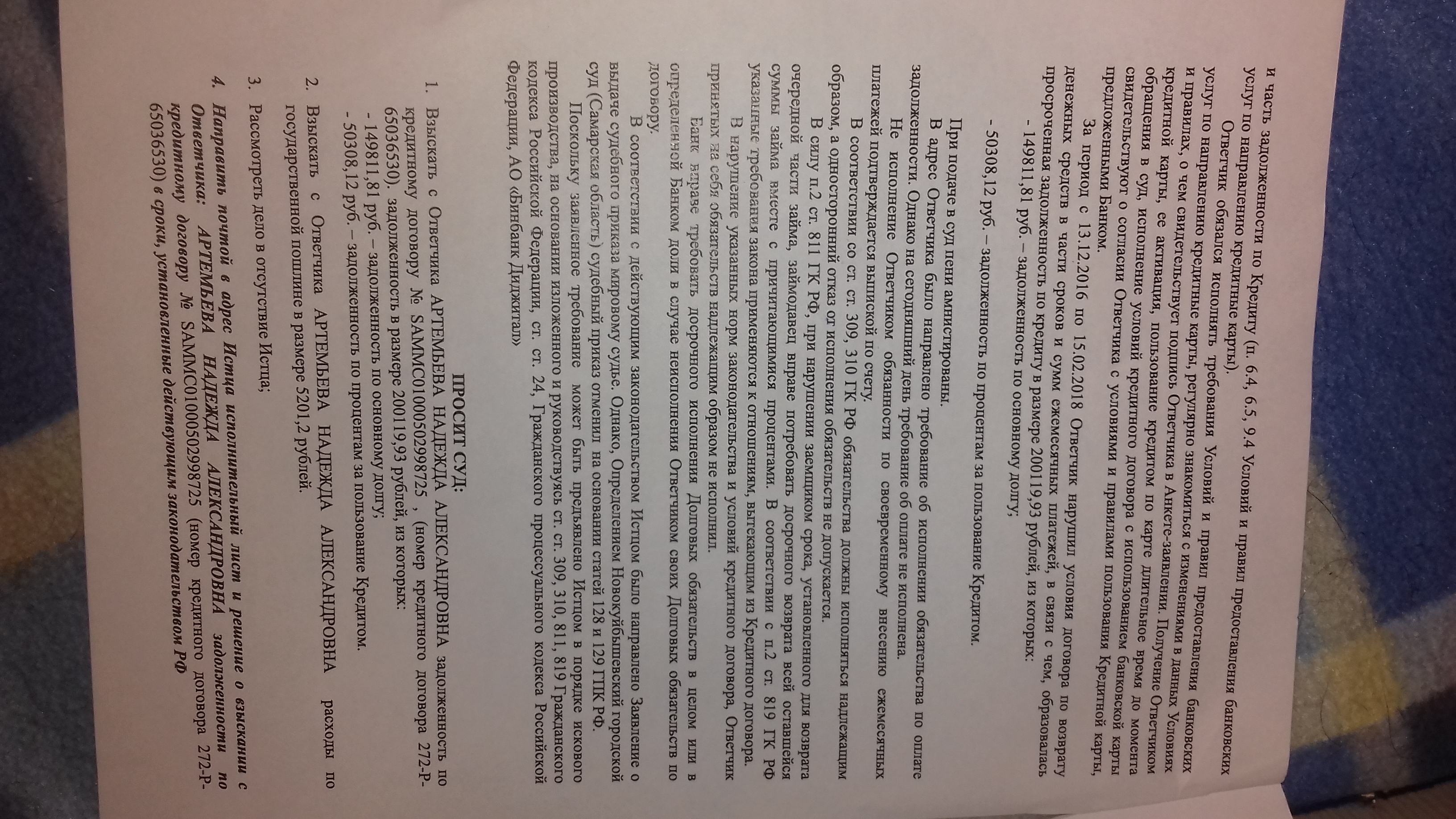 Здравствуйте.Мама взяла кредитную карту в москомприватбанке,исправно ей пользовалась два года,потом этот банк закрылся и его выкупил бин банк.Договор с бин банком она не заключала.После этого ежемесячно стали звонить из банка и говорить о просрочках,хотя она вносила ту же сумму что и обычно,в итоге она просто пеерестала платить т.к. в дальнейшем потеряла работу по состоянию здоровья.Сейчас через два года бин банк подал в суд.Как лучше написать возржение и на какие законы и статьи кодекса РФ опираться?Вообще может ли бин банк требовать вернуть долг москомпривата?