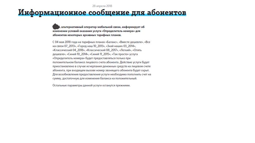 Доброго времени суток. Мой оператор мобильной сети с мая 2018 г. убрал с обслуживания несколько важных услуг. Объясню подробней: компания, с которой был заключен договор на тарифный план (примерно в 2016 г.), а, соответственно,на подключение ряда услуг, перепродала свою компанию другому оператору. Со старым оператором был заключен договор, где ВОЗМОЖНО! было прописано, что изменение тарифного плана возможно без уведомления абонента по смс, либо другого способа. Особо важным уведомлением они считали публикацию на своем сайте. Таковая присутствует на сайте новой компании, но самостоятельно я ее не нашла, удалось посмотреть только пользователей стороннего форума. Проблема, собственно, в чем: при отрицательном балансе (или, как пишут абоненты этого же оператора на форумах, при плюсовом менее 5 рублей), мне недоступны услуги: 1) Определитель номера (хотя до сих пор эта услуга по данным их сайта считается "бесплатной и не требующей подключения"; 2) мне также недоступны вызовы на мой нефедеральный (городской) номер (хотя городской номер предоставляет третий оператор, и это основная причина неперехода к стороннему оператору), 3) интернет (с этим проблем нет, все понятно, вроде). Вопрос следующий: на какие нормы закона мне опираться при написании претензии?