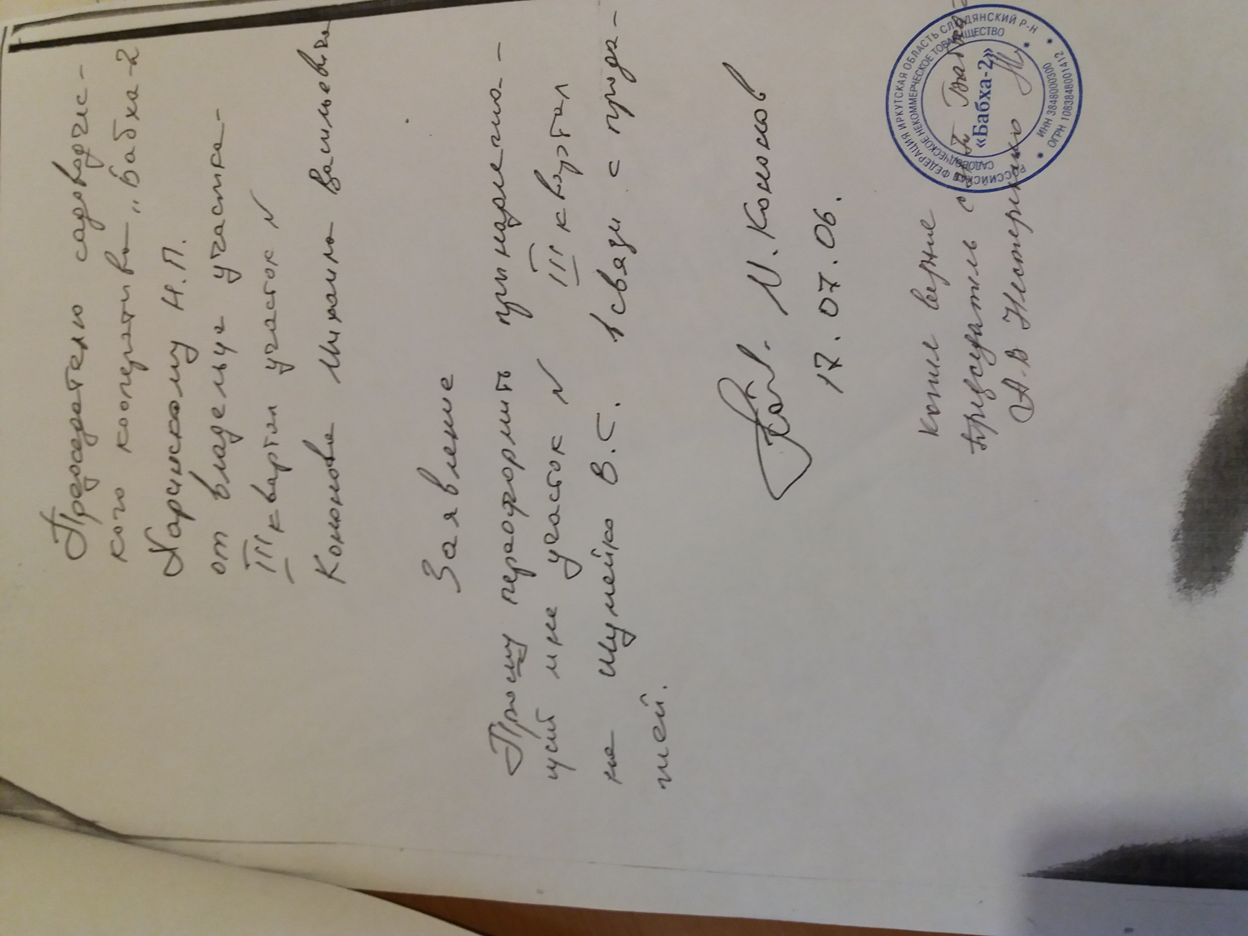 Доброе утро Андрей! Если у вас на руках только это заявление, то скорее всего у ваше право собственности на участок не зарегистрирован. Вы брали выписку из Россреестра вашей области? что там сказано о вашем участке? Если права не зарегистрировано, то Вам необходимо обратиться в суд для признания договора купли-продажи заключенным.