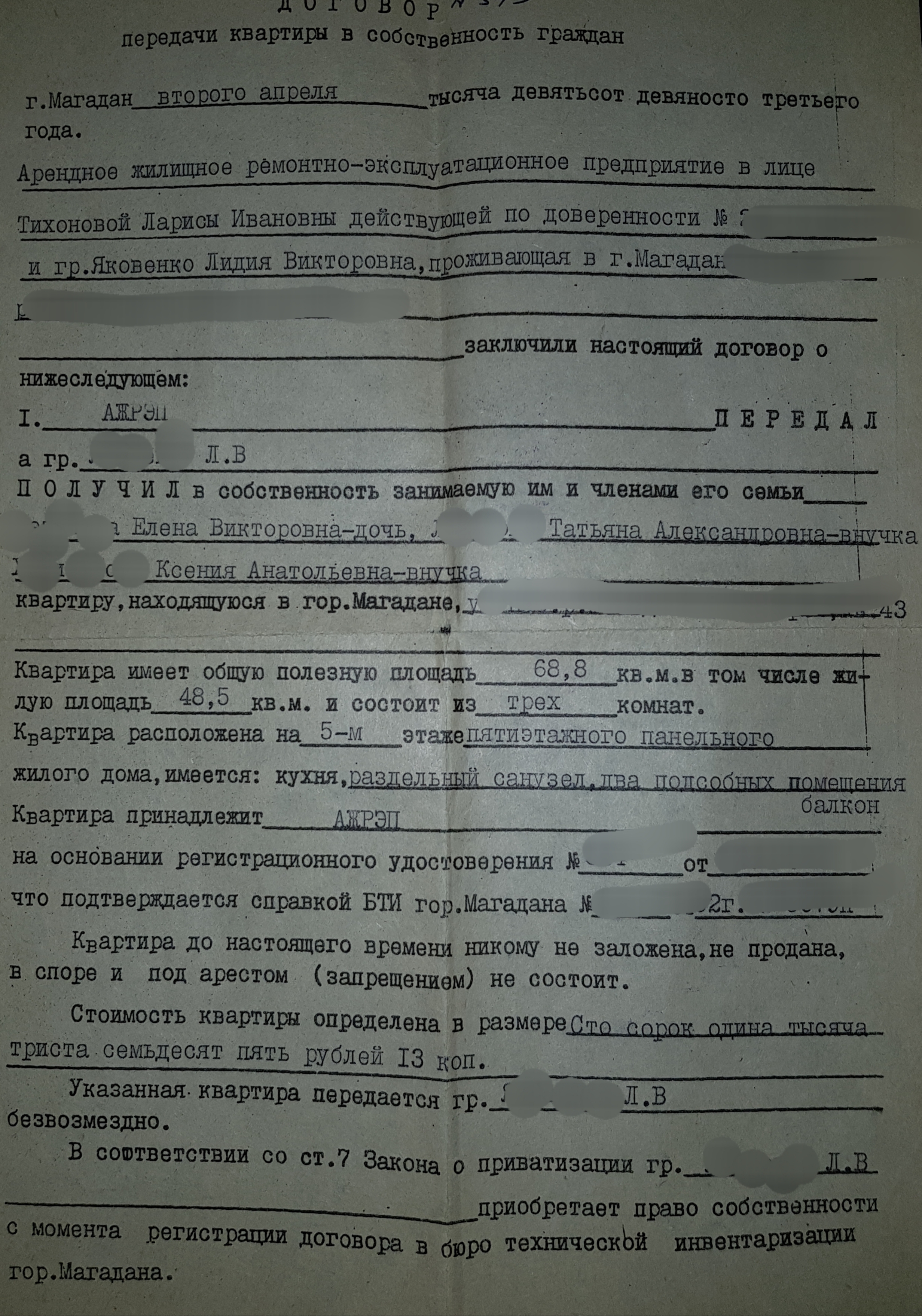Договор о приватизации от 1993 года