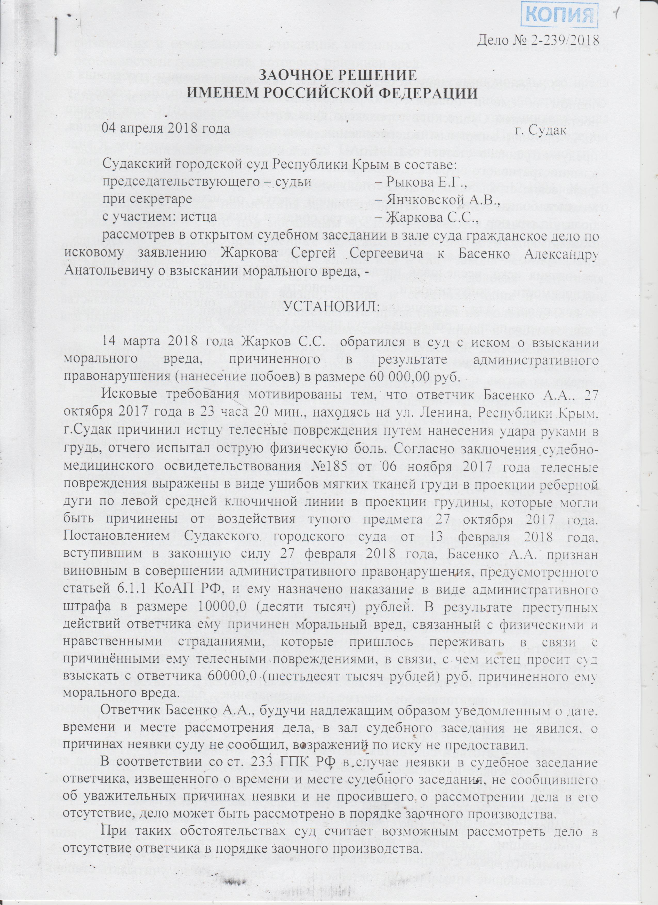 28.02.2018 меня вызвали в гор. суд.Состоялось судебное заседание по его заявлению. Городской судья Ионенко не дав ни слова мне сказать в свою защиту ( моими свидетелями были ещё 4 наших водителя) присудила мне админ.штраф в размере 10 000 руб. Я уплатил штраф в определённые законом сроки.