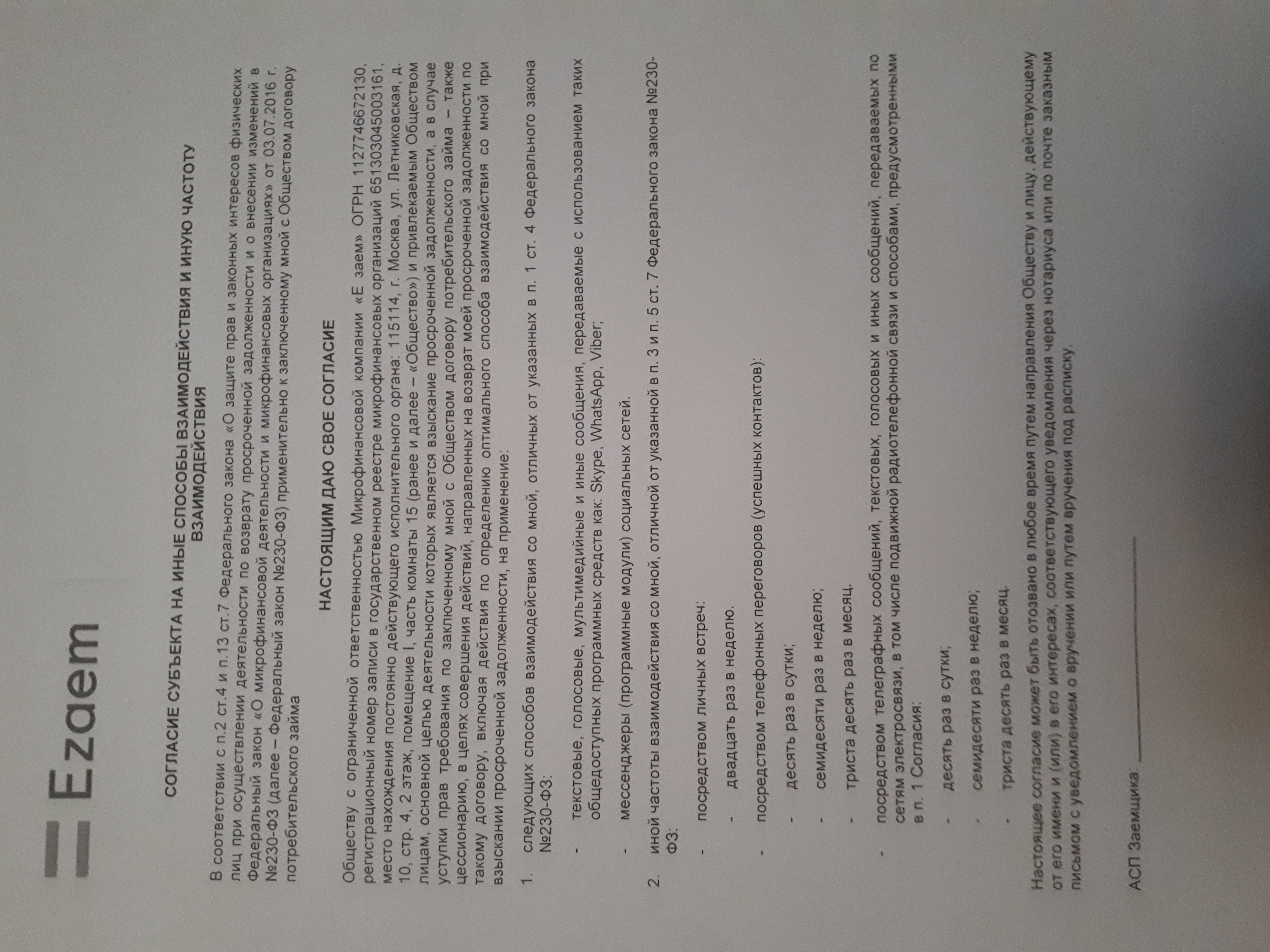 Иной частоты взаимодействия со мной, отличной от указанной в п. З и п. 5 ст. 7 Федерального закона N 230-ФЗ: