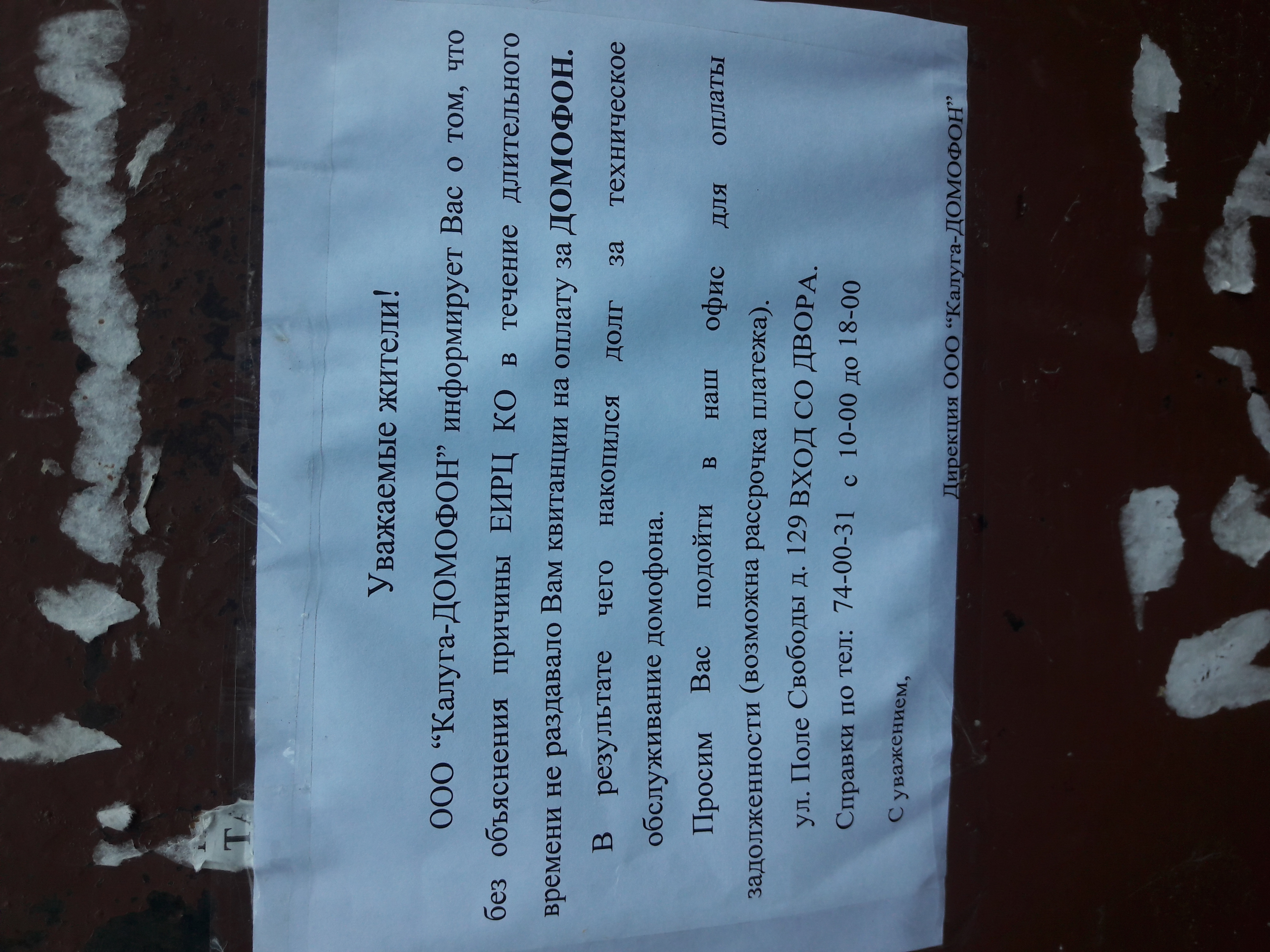 Здрасвуйте , 2 года назад перестали приходить квитанции о оплате домофона.теперь обращовалась задолжность о которой оповестили жильцов ,рукописным обьявлением и предложением оплатить ее в расрочку , долден ли я платить если домофон у меня не работает и управляющая компания говорит что не с какими домофоновскими компаниями не сотрудничает?