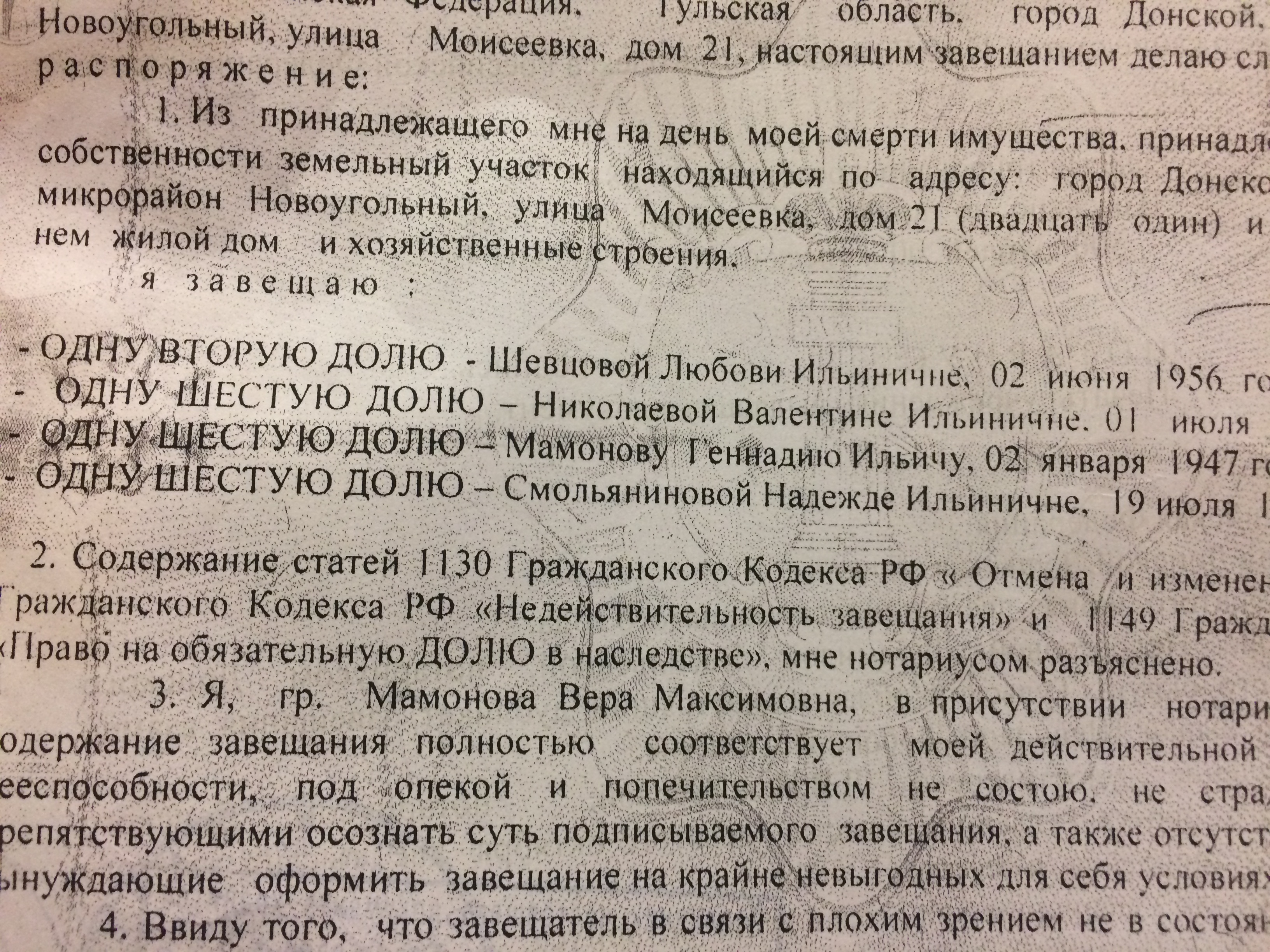Добрый день. Мой отец умер не вступив в наследство, так как его мама была ещё жива. Через год после смерти отца умерла его мама. Сейчас оформляем завещание. В завещании написано 1/2 доля дома тёти и по 1/6 доли ещё трём детям - это двум сёстрам и моему отцу. Скажите пожалуйста какая доля мне полагается? Нотариус делит долю отца на меня и всех его сестёр.